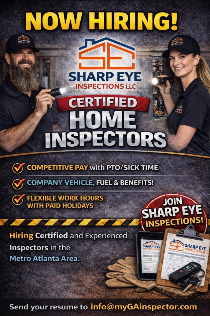 The demand for professional home inspections across the Metro Atlanta and West Metro Atlanta areas continues to grow—and at Sharp Eye Inspections, we’re growing with it. As more buyers, sellers, and real estate professionals rely on our trusted expertise, we’re actively looking to expand our team with certified and experienced home inspectors who share our commitment to quality, professionalism, and customer service.